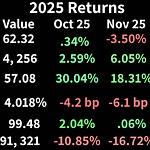 In Argentina, President Milei surpassed expectations in the country’s midterm elections. Helped by a $20 billion swap line established by Treasury Secretary Scott Bessent, Milei’s political results will help him shore up the country’s finances with outside creditors, especially the International Monetary Fund. High borrowing costs and currency weakness continue to plague the country, but both have improved dramatically under Milei’s dramatic move to free market policies. With the large oil and gas deposit of the Vaca Muerta waiting for more infrastructure, outside capital with better funding arrangements and more certainty seems only a matter of time. Politically, the related escalation of tensions between the United States and Venezuela has enormous implications across the globe, but especially in the southern hemisphere. Venezuela has the largest oil reserves in the world, and a change in leadership could make a massive difference in many areas and industries, but especially in South America and the oil and gas sector.